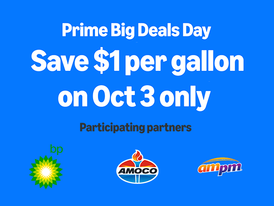 Amazon Prime Members Save $1 a Gallon on Fuel October 3rd This offer is valid for active Prime members in the U.S. only. The $1 off per gallon is valid for one time use, up to 35 gallons max on the next fill-up available on October 3 only. CLICK HERE
